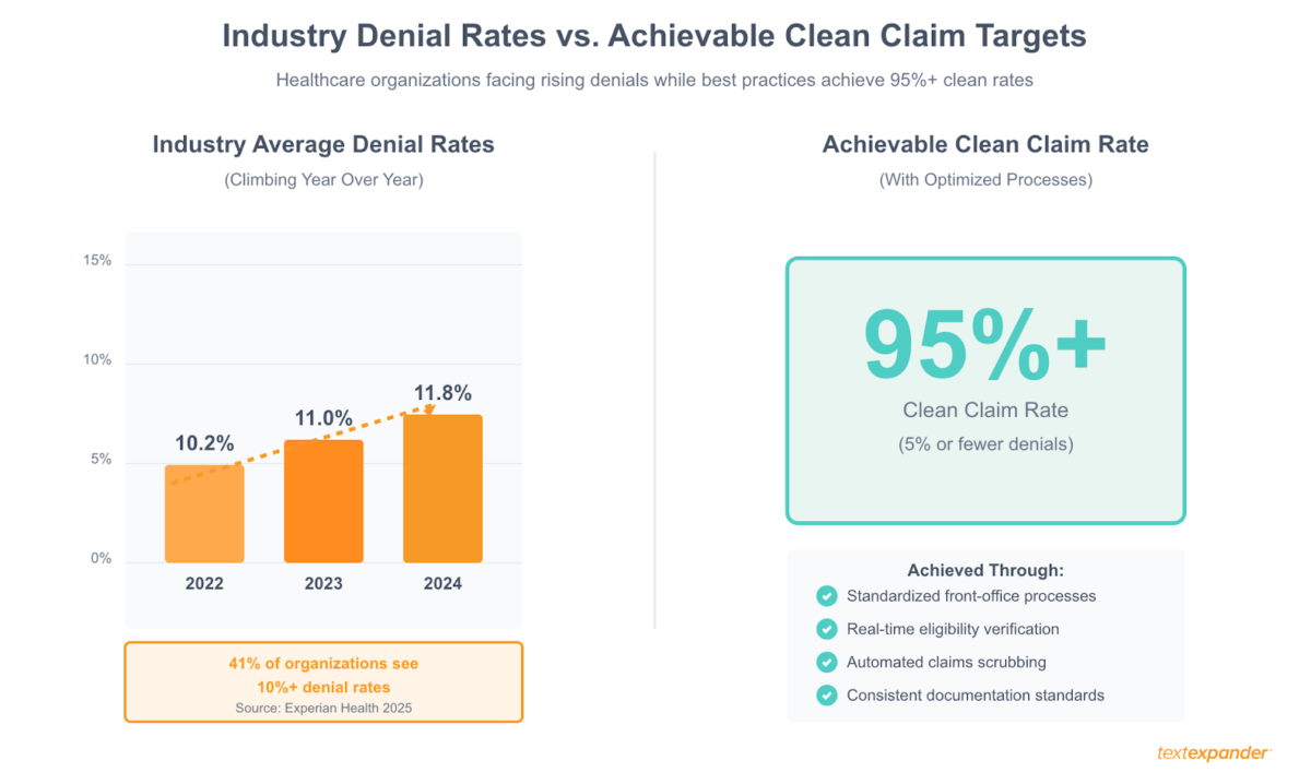 Let’s talk about where things typically go wrong. Recent research from Experian Health found that 41% of healthcare organizations now see at least 10% of their claims denied. Even more telling—68% report that submitting clean claims is harder now than it was a year ago. This isn’t random. The same problems keep showing up.