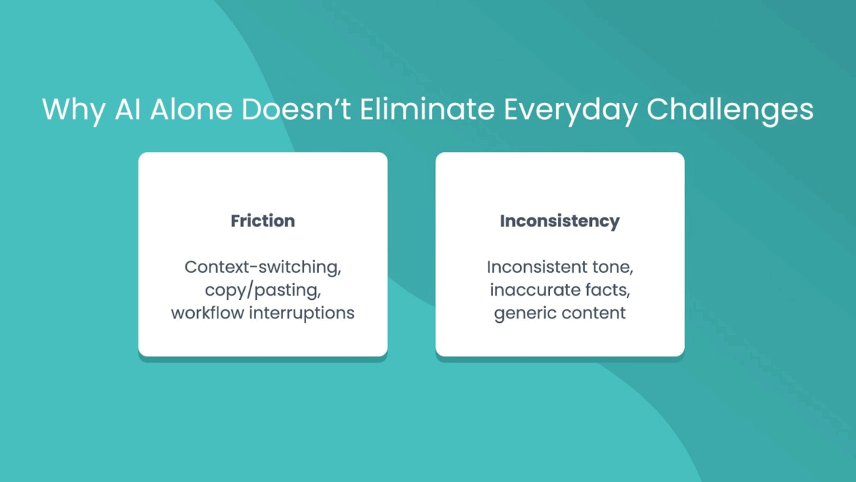 As J.D. notes, “Standalone AI tools pull you out of your workflow. You have to leave what you’re doing, open another browser tab or program, type your prompt, wait for a response, copy and paste content, and then go back to where you started. That’s a lot of friction from context switching.”